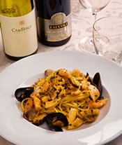 Cavallo di battaglia della nostra cucina composto da polpi, seppie, calamari, cozze, vongole e gamberetti. Cotto rigorosamente al momento e macchiato appena di pomodoro.